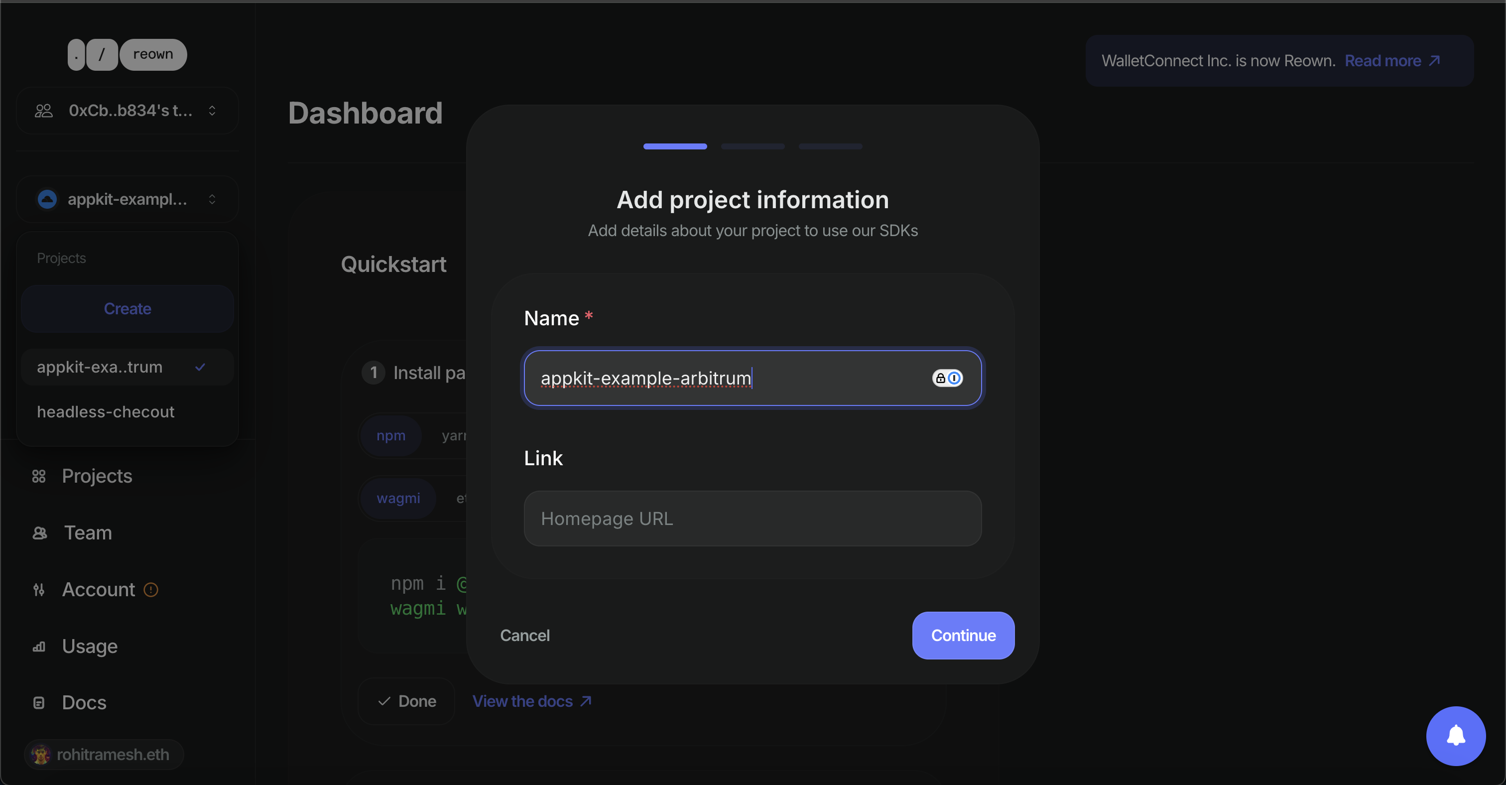 Create a new project on Reown Cloud